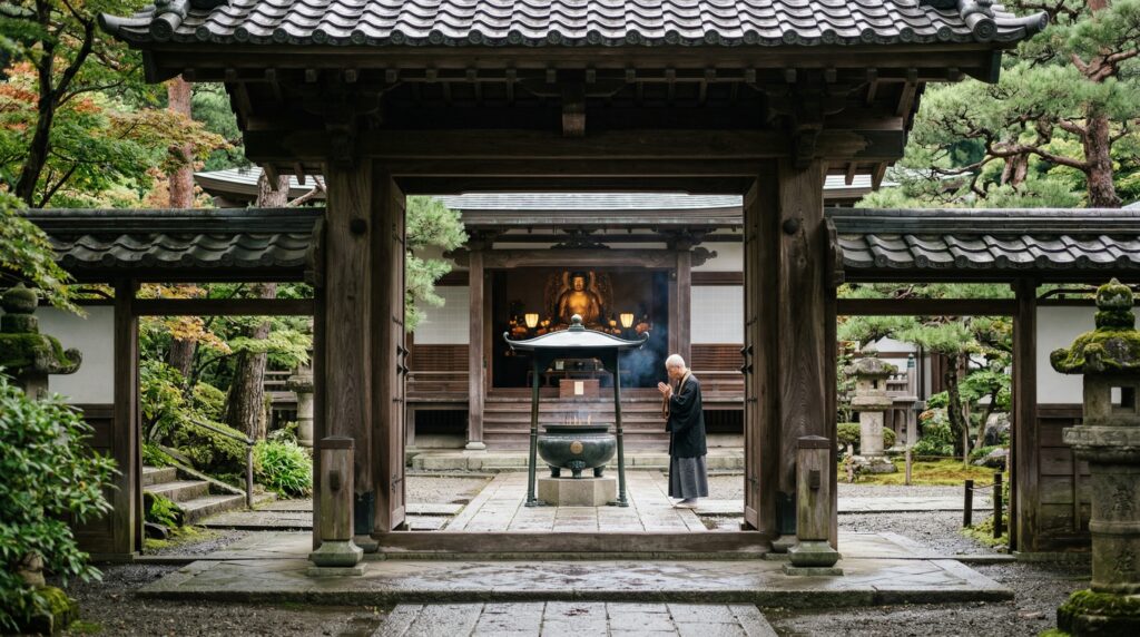 A temple is a Buddhist place of worship. Temples in Japan have long served as spaces for prayer, memorial services, spiritual training, and reflection.