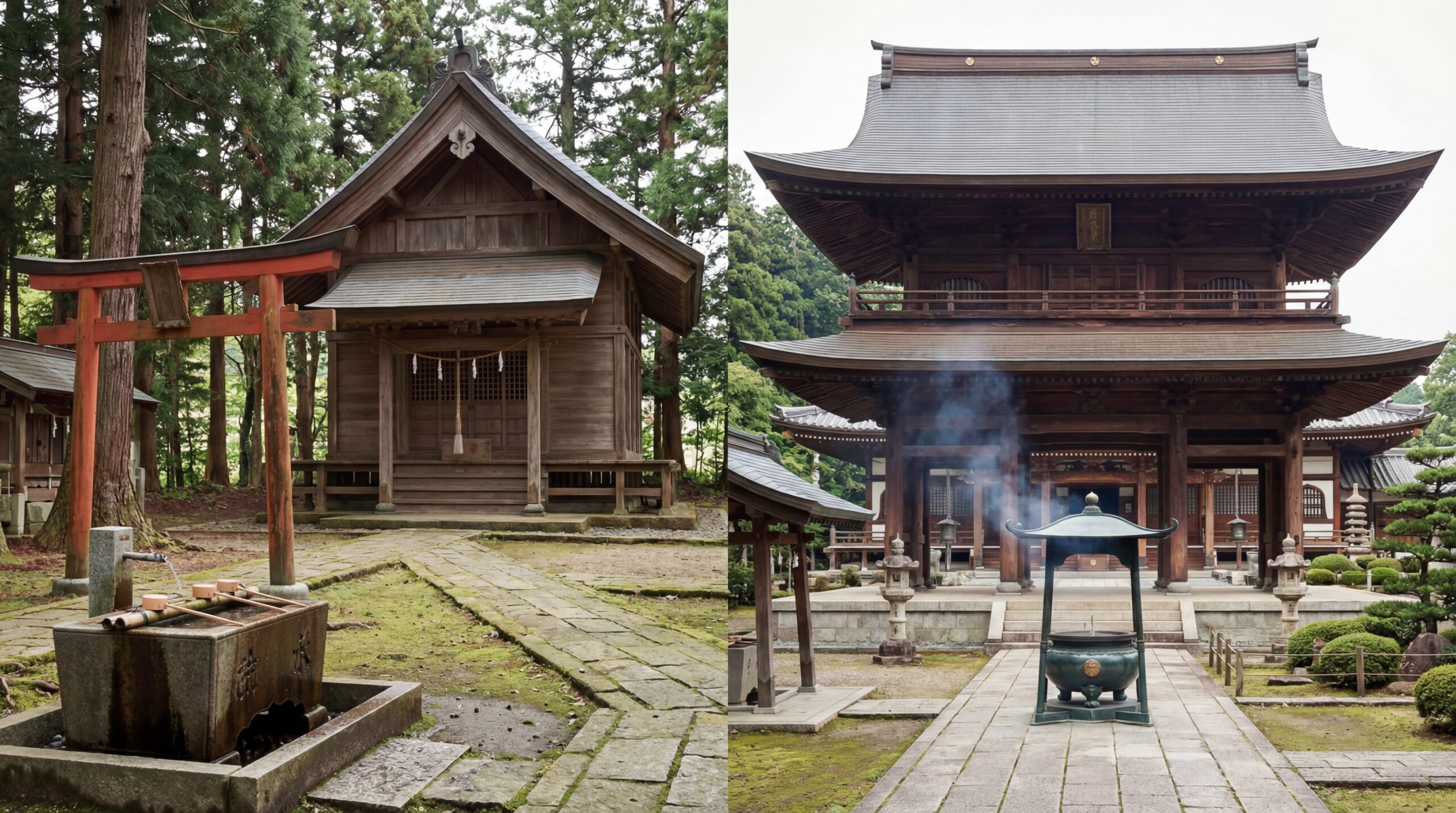 神社とお寺は似て見えても、信仰の土台が違う。だから建物の雰囲気や参拝の作法にも違いが出てきます。
